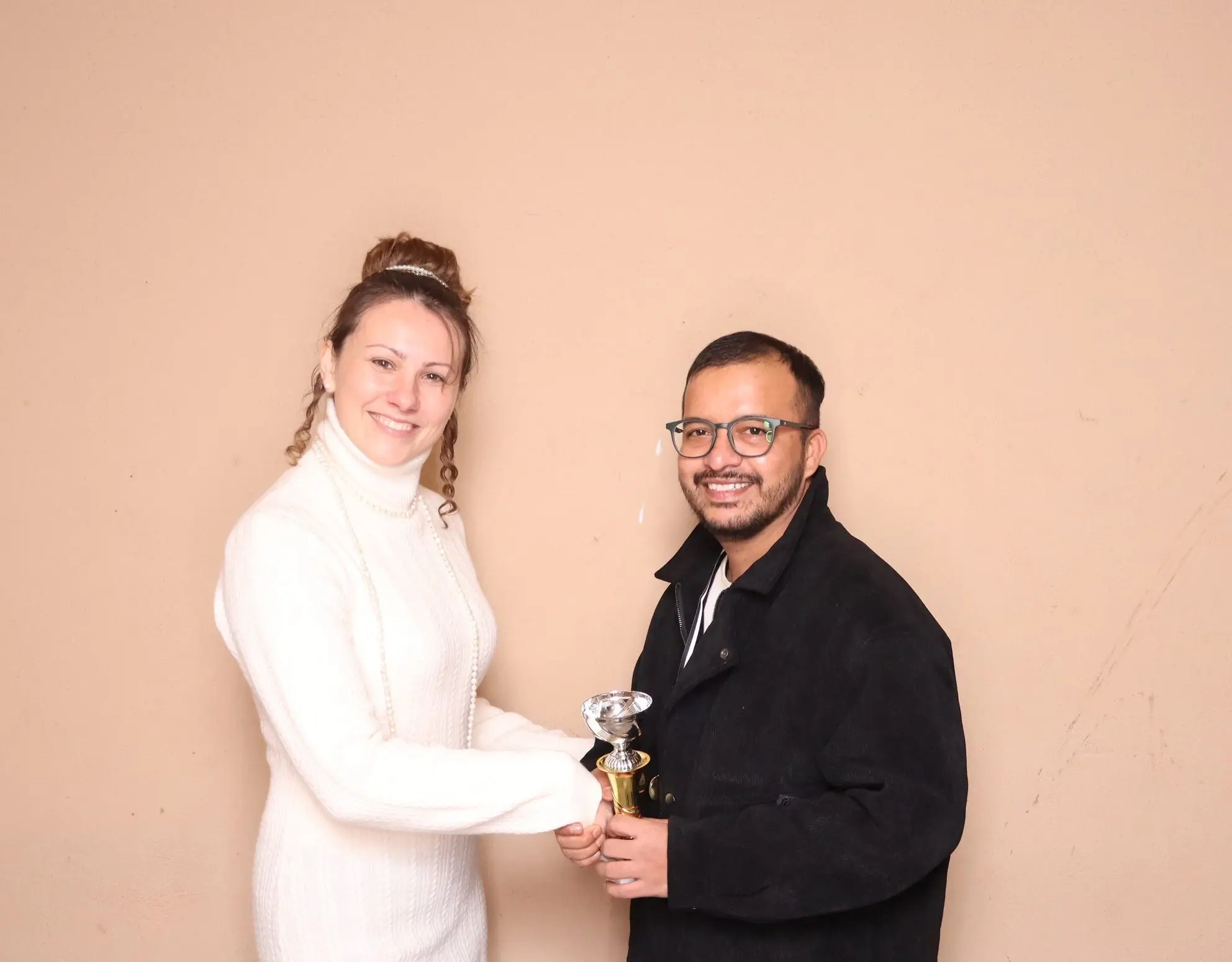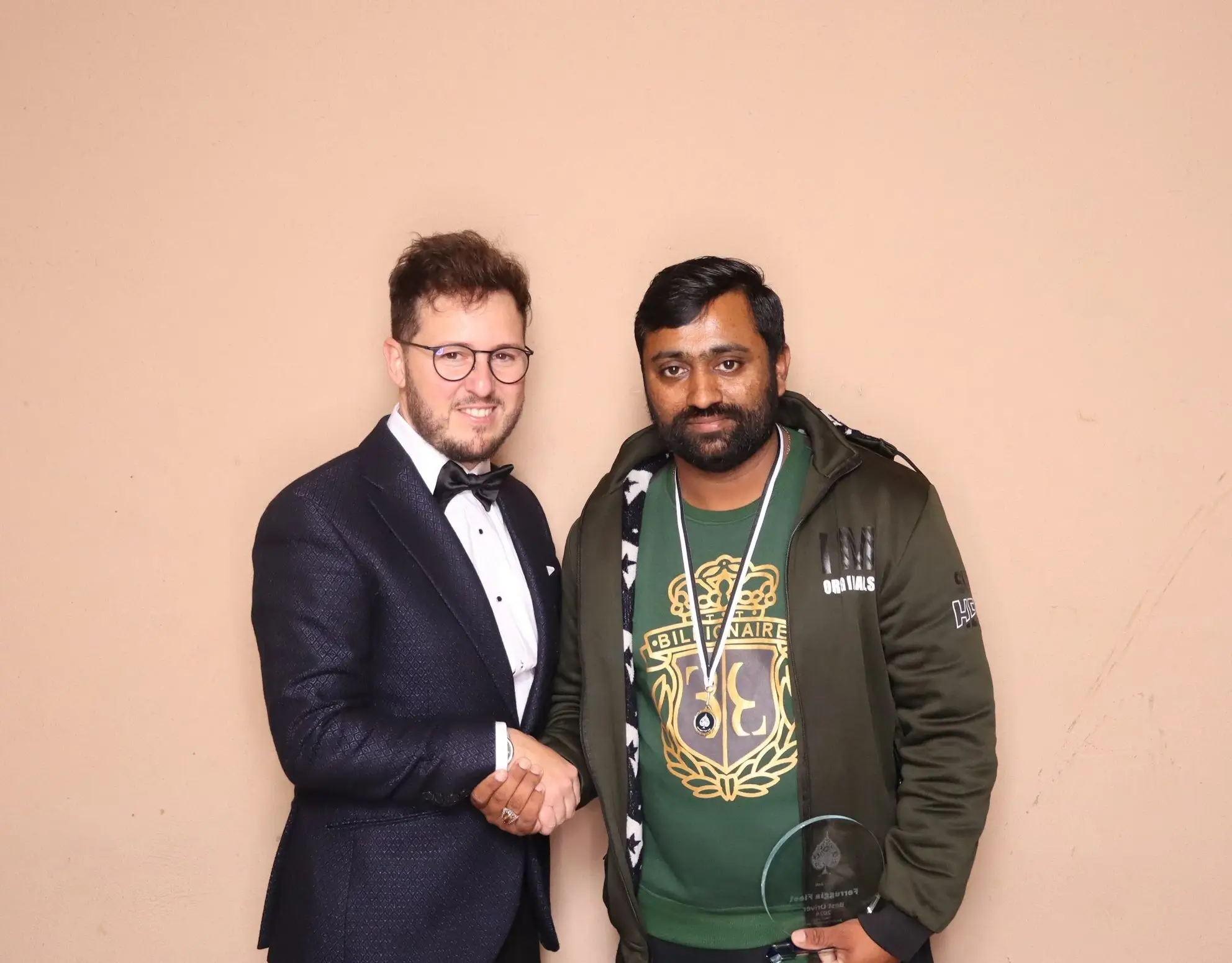 Handshake between Fabrizio Ferruggia and an employee